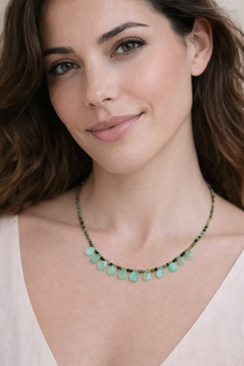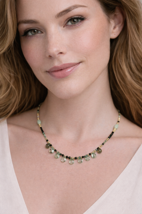 Delicate Necklace with Semiprecious Stones – Gold Plated Brass