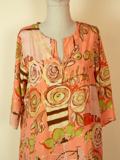 Warm weather is calling and Titli Tunic is here to give you style and comfort. Gorgeous one size tunic in bohemian print with mid-length sleeves and V-Neck in loose fit. Made by recycled silk, this tunic completes perfectly every summer outfit. You may wear it as a dress or a shirt.