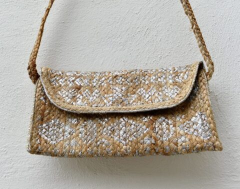 1157 Jute silver sling bag