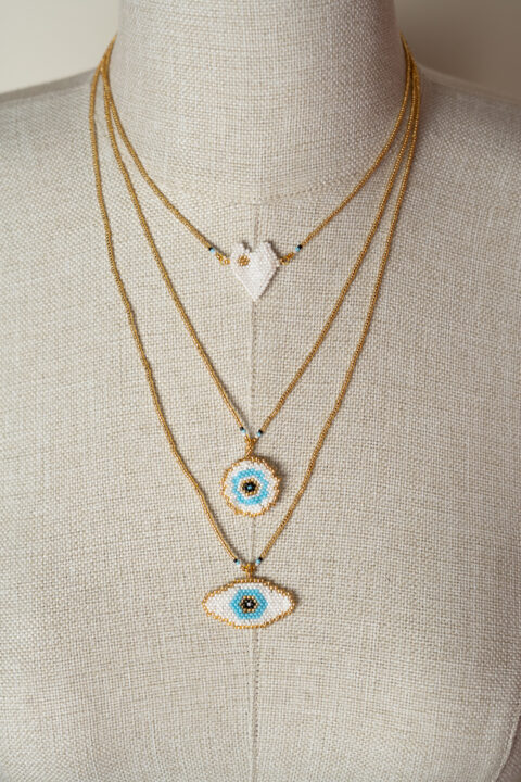 Handmade beaded evil eye necklace triple