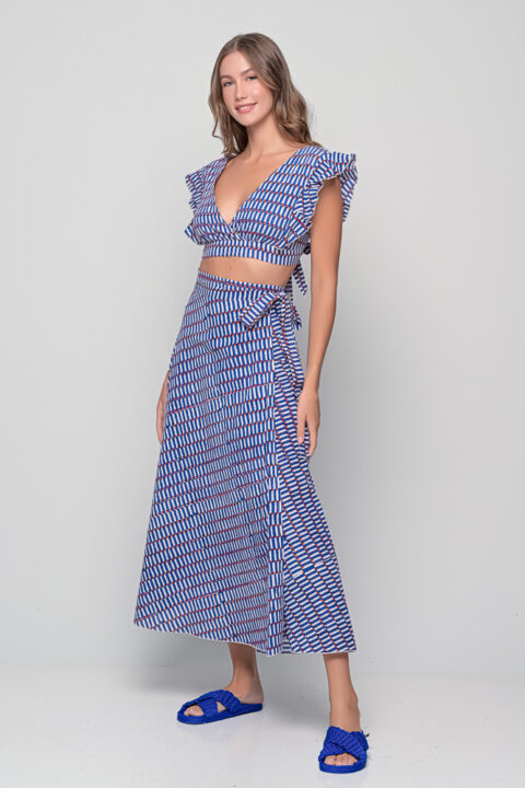 Blue Palm & Stripe Cotton Set – Crop Top and Shorts (One Size)