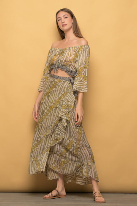 Bohemian set long wrap skirt Cotton with indonesian blockprint