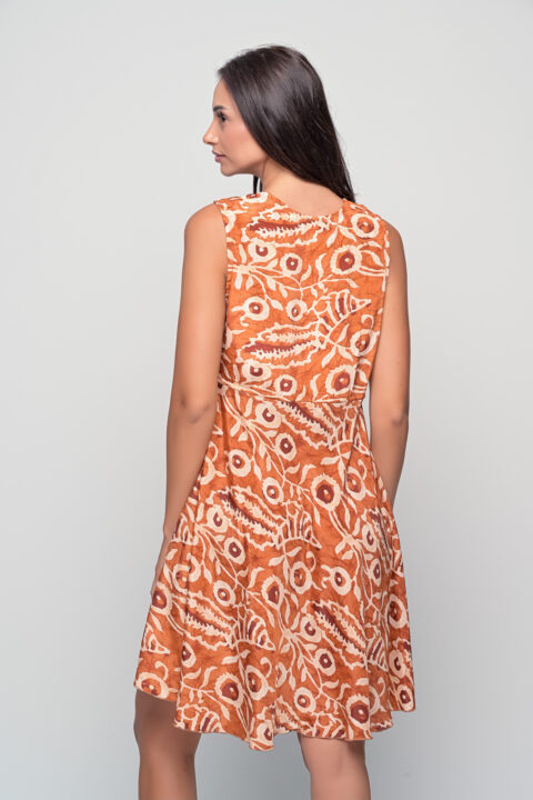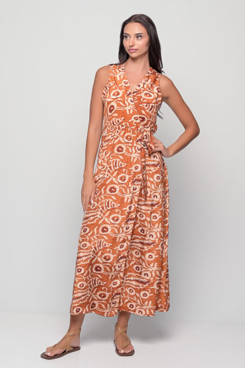 Syros Wrap Dress – Dabu Cinnamon | Saree Silk