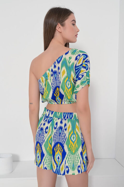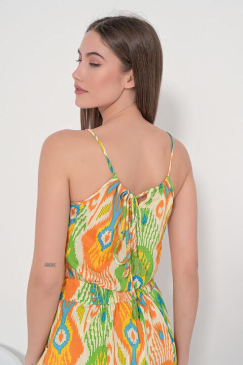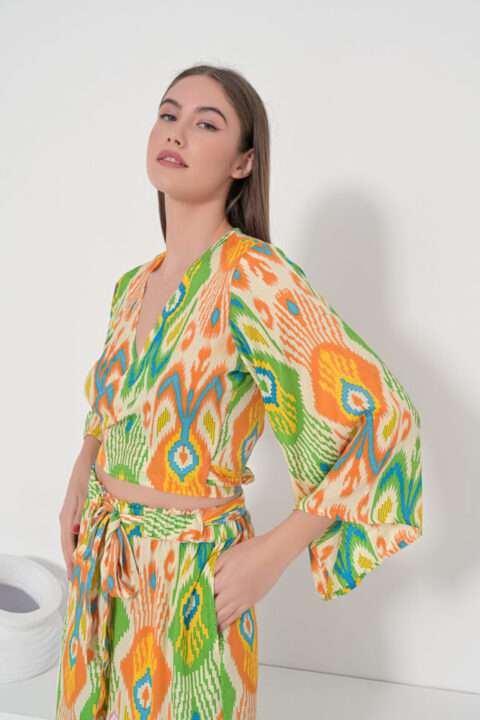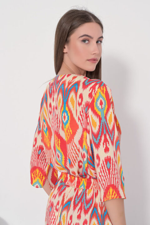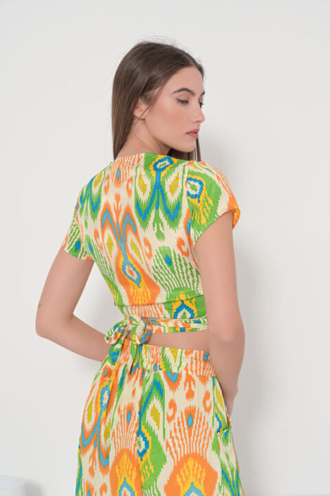 Tie top orange ikat short sleeves
