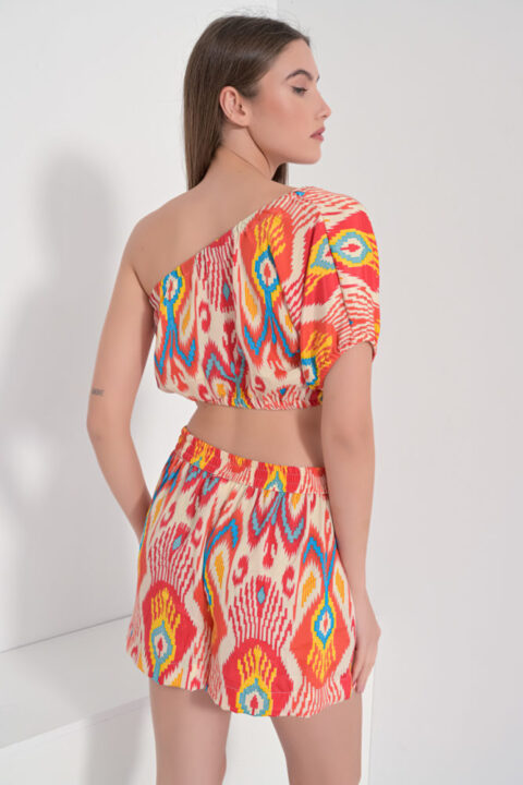 Tie top red ikat short sleeves