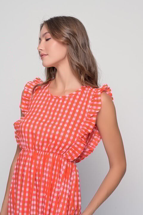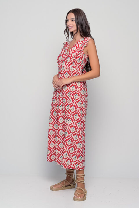 Acacia Dress – Red Triangular Print | Cotton | Sizes SM & ML
