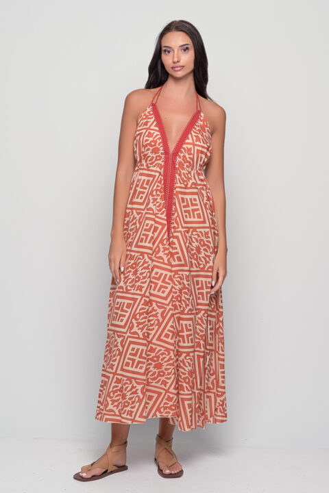 Acacia Dress – Red Triangular Print | Cotton | Sizes SM & ML