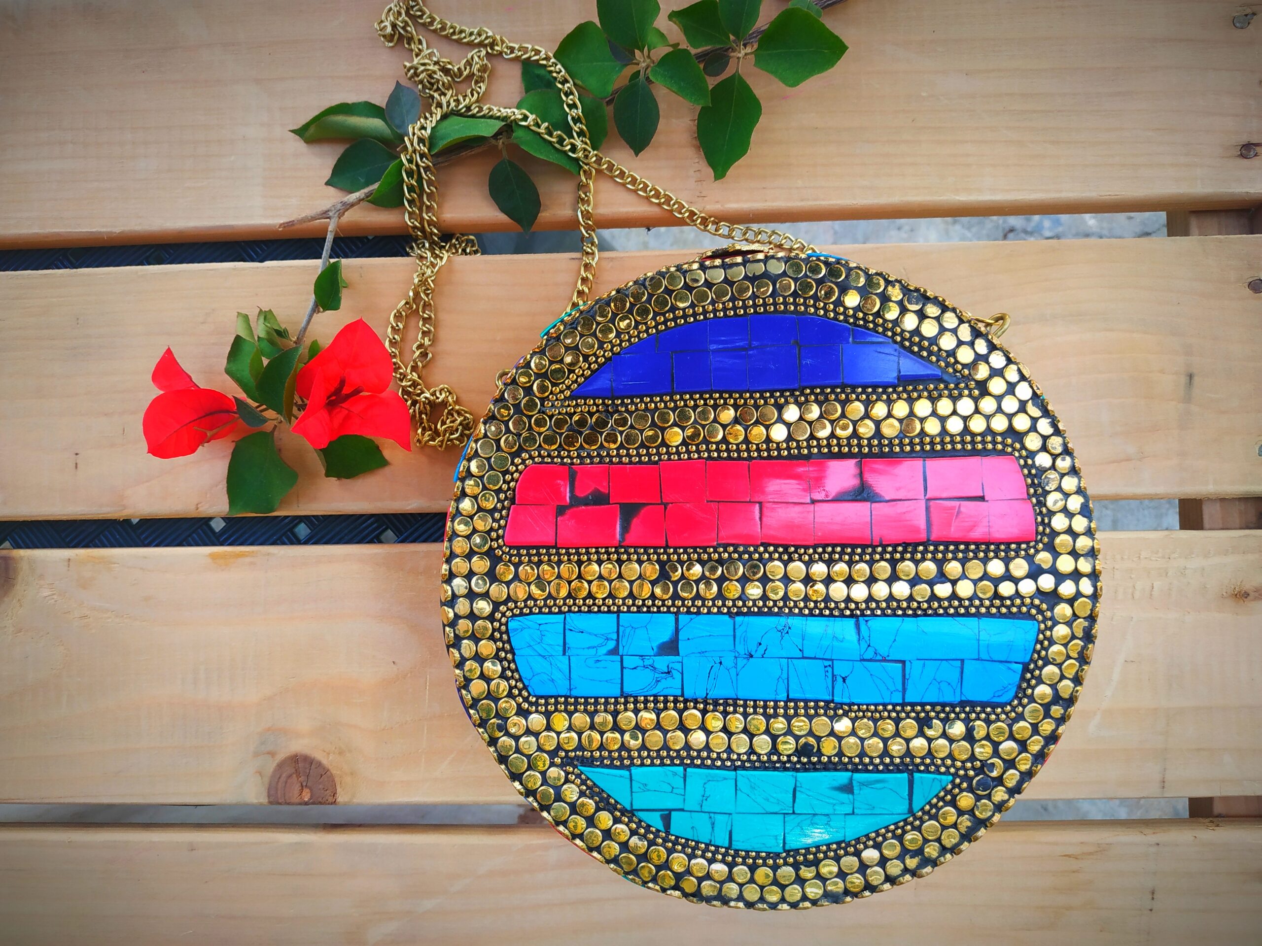 Handmade metallic bag from India