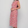 Designed in sizes SM and ML, it flatters the silhouette with a gently fitted waist and a flowing midi-length skirt. The Red Triangular Print adds a vibrant, handcrafted touch — making this piece perfect for sunny days, afternoon gatherings, or relaxed evening strolls.