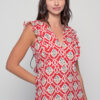 The Acacia Dress in Red Triangular Print combines playful femininity with timeless ease. Made from soft, breathable cotton, this sleeveless dress features delicate ruffle details on the shoulders and an elegant open back with adjustable ties, offering both charm and comfort.