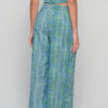 The Anna Trousers in blue green block print celebrate craftsmanship and timeless bohemian style. Pair them with a simple blouse or the matching top for a coordinated look.