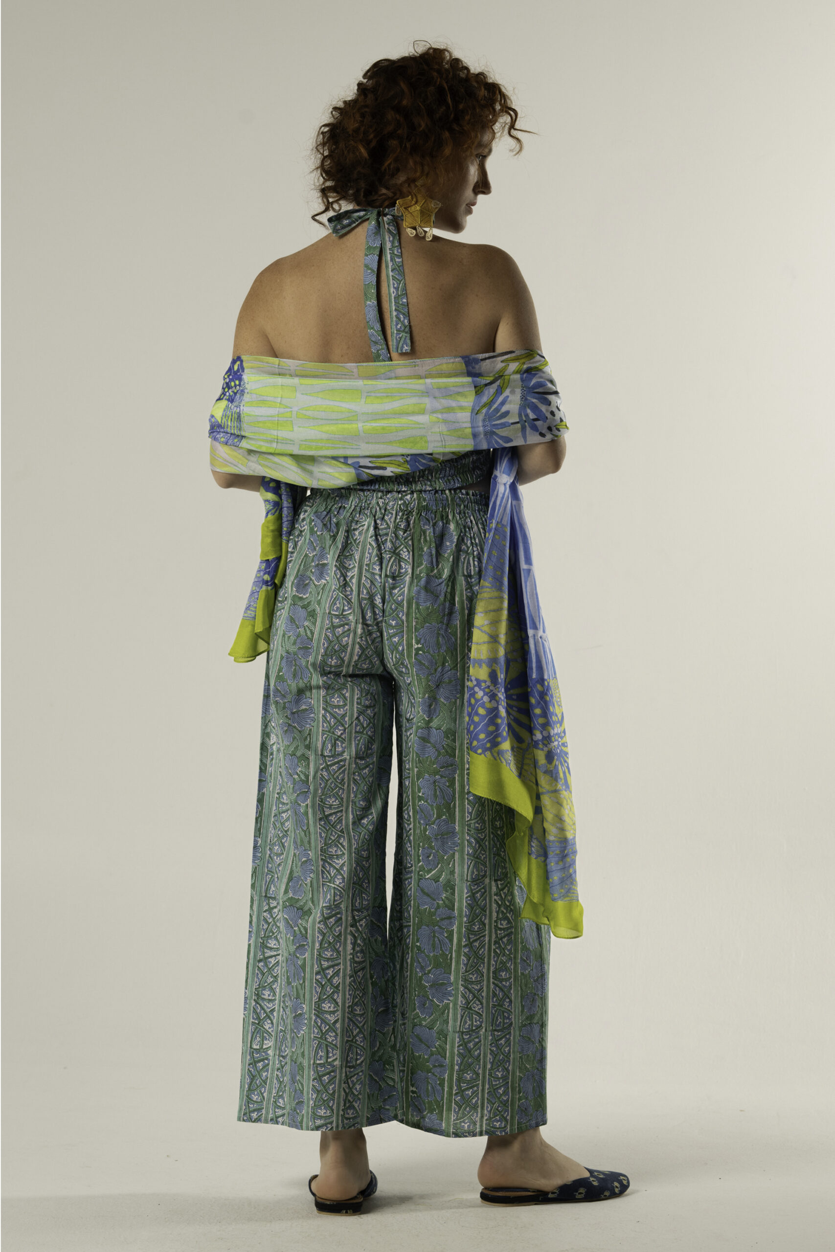 The Anna Trousers are a relaxed yet elegant Knowmad piece, crafted in breathable cotton and decorated with the traditional handmade block print technique. This edition features the vibrant blue green pattern, achieved by carefully hand-stamping the fabric with carved wooden blocks — each piece is unique.
