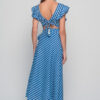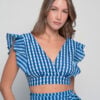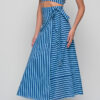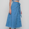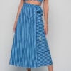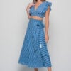 The Anokhi Set is a playful yet elegant Knowmad design crafted in breathable cotton. This version features the Stripes print in blue, giving it a fresh and timeless appeal. The flutter-sleeve crop top with a deep V-neck pairs effortlessly with the wrap-style maxi skirt, making this two-piece set perfect for summer days, vacations, or evenings out. Both pieces can be styled together or separately, offering versatile wardrobe options.