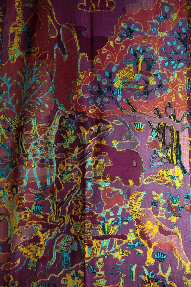 Step into a world of color and story with this exceptional art print wool shawl (90×220 cm), created by Indian artisans.