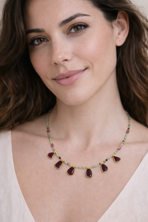 Lightweight and feminine, this necklace is designed to be worn alone for a minimal look or layered with other fine chains for a more expressive styling. A timeless piece that adds a touch of color and understated luxury to any outfit.