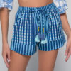 Shorts with elastic waistband and tassel tie