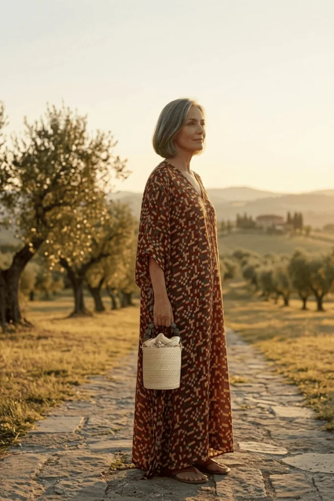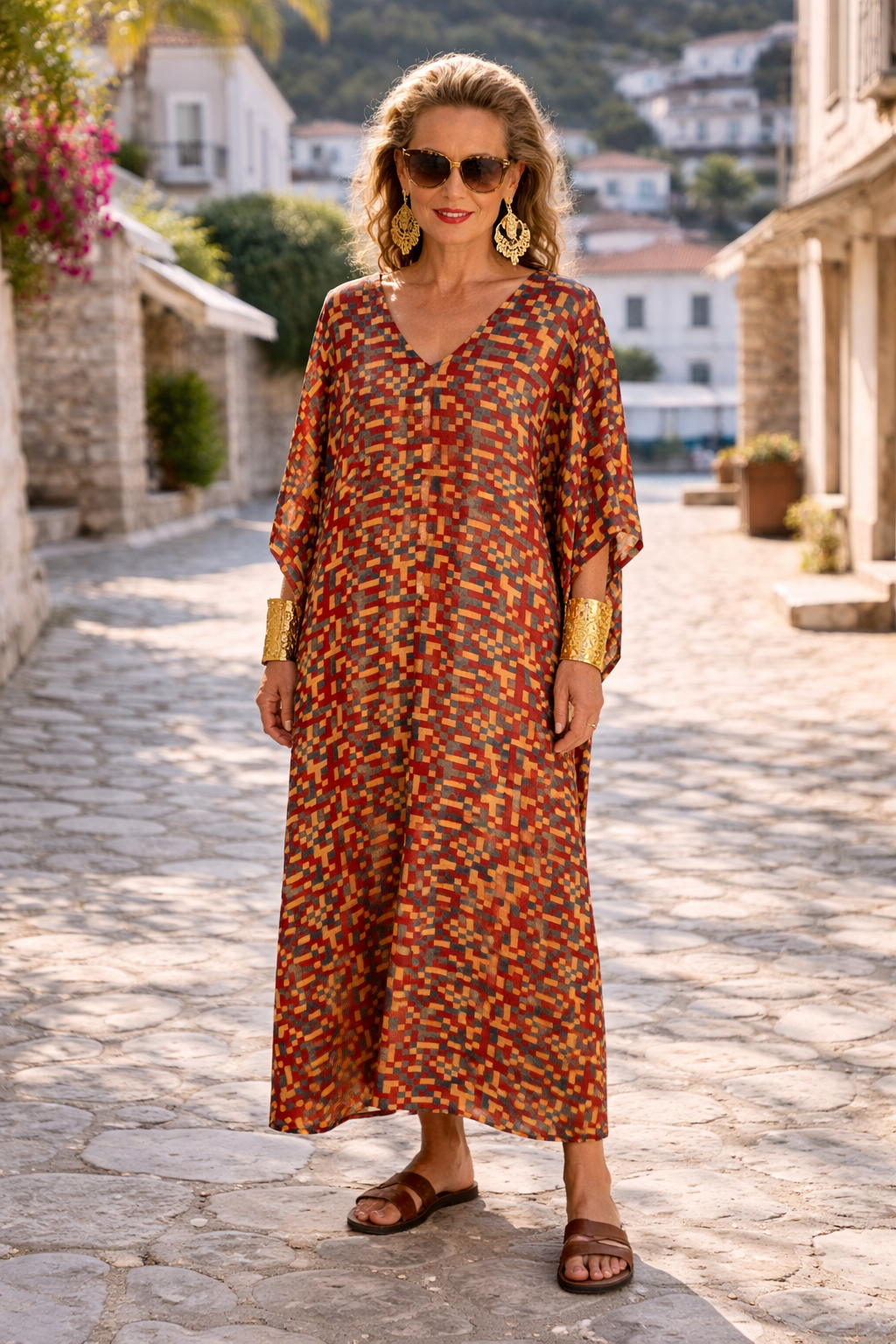 Caftan Dress red block print