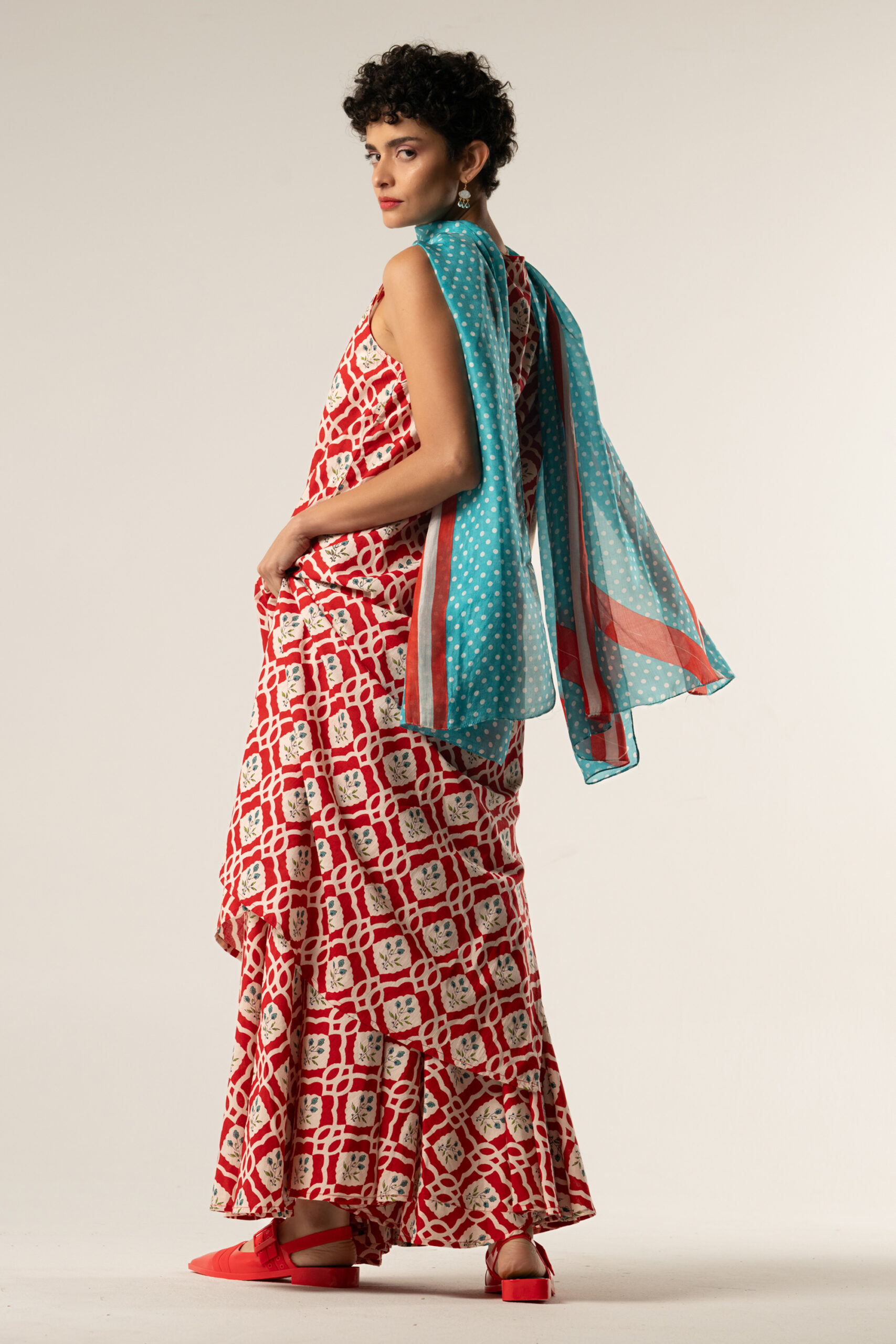 The Calliope Dress – Red Triangular Print is an easy statement piece — feminine, comfortable, and effortlessly chic.