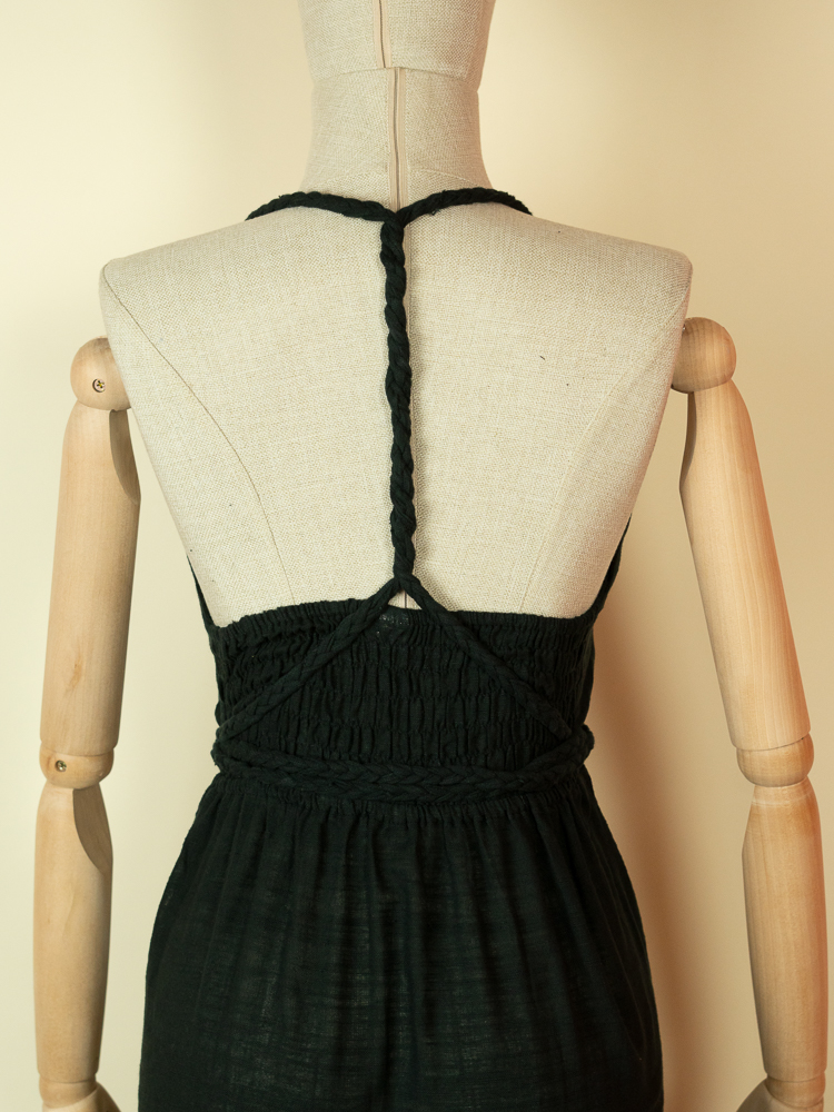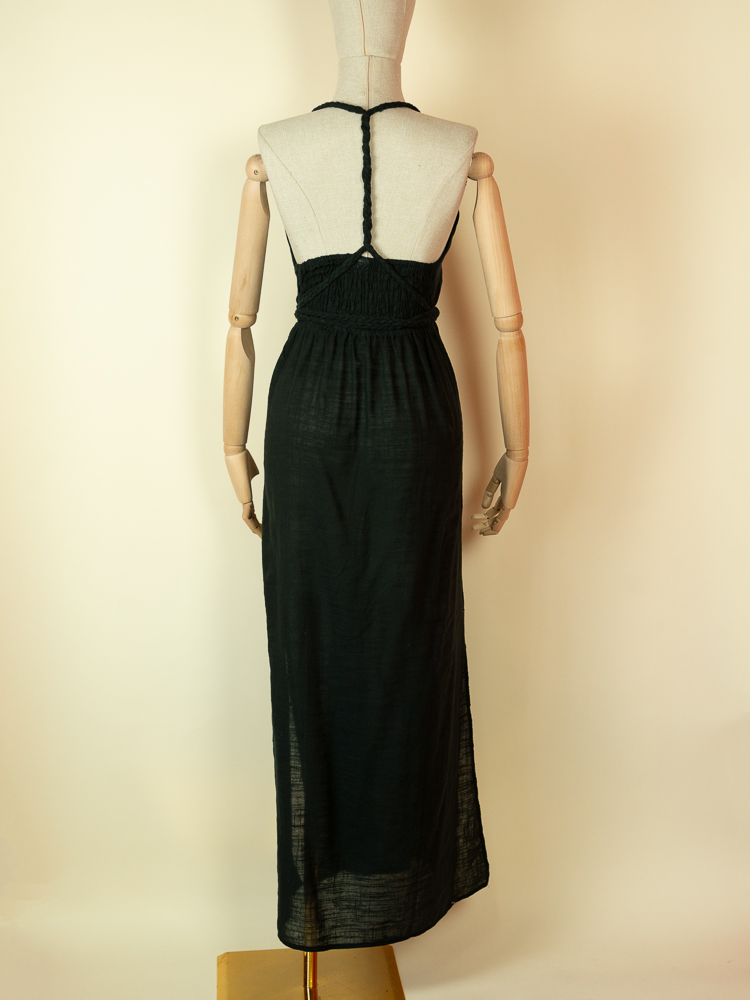 Cotton Halter Maxi Dress – Black Resort Dress with Side Slits