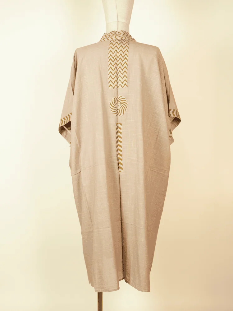 This cotton kimono in Beige is designed as an easy, versatile layer for everyday wear. Made from lightweight cotton, it feels breathable on the body and offers a soft, natural drape.