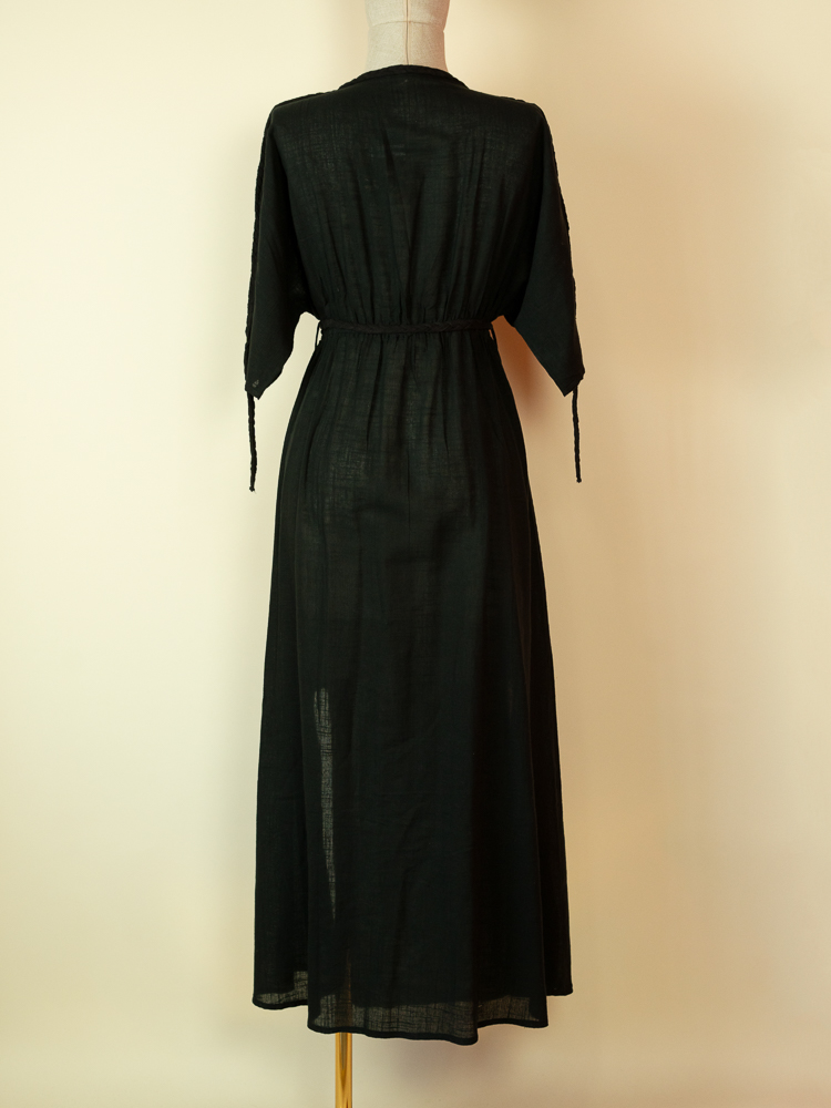 This Black cotton kaftan dress is designed for effortless summer living. Made from lightweight breathable cotton, it offers a relaxed silhouette that moves naturally with the body while keeping you cool under the sun.