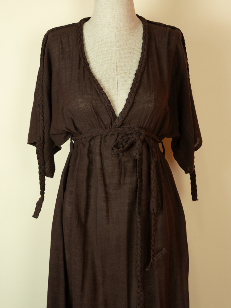 This Chocolate cotton kaftan dress is designed for effortless summer living. Made from lightweight breathable cotton, it offers a relaxed silhouette that moves naturally with the body while keeping you cool under the sun.