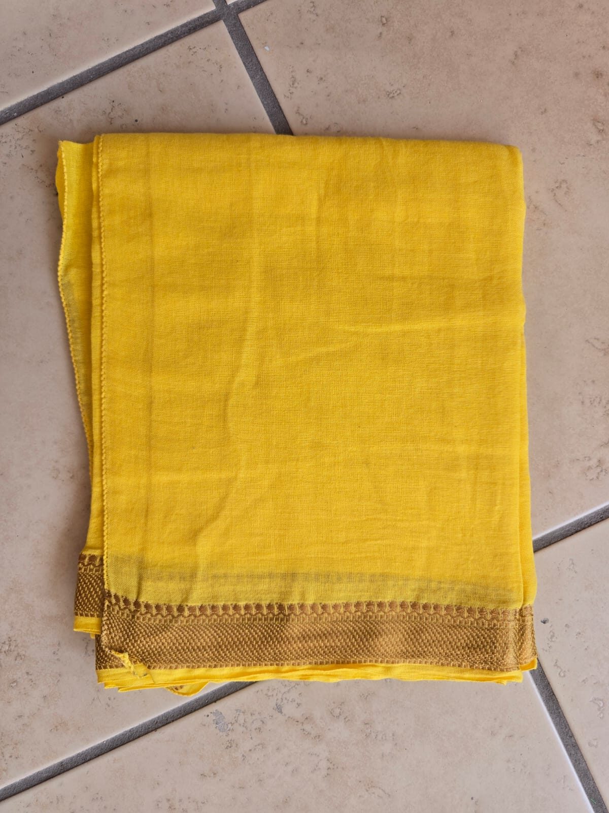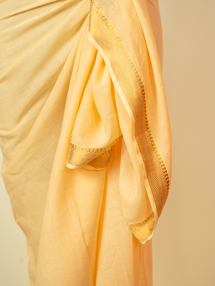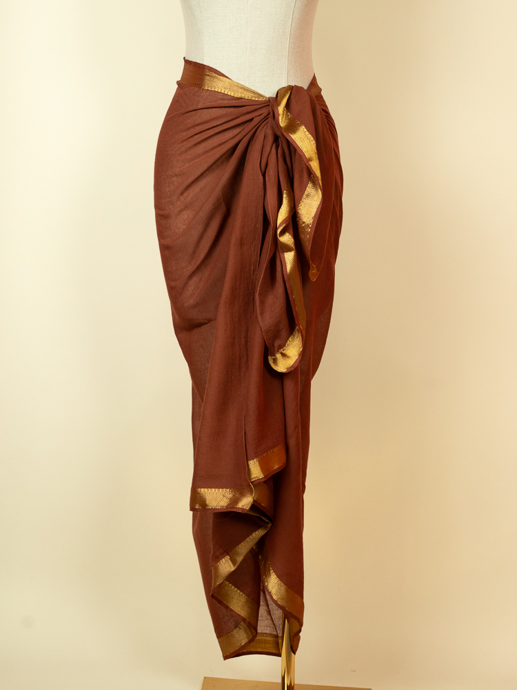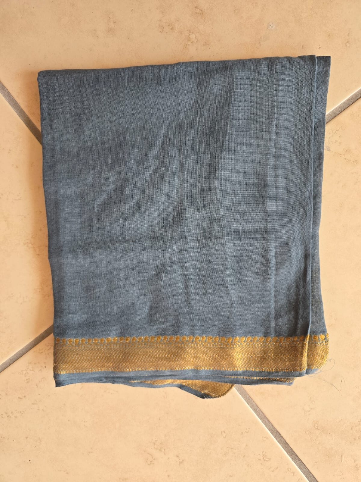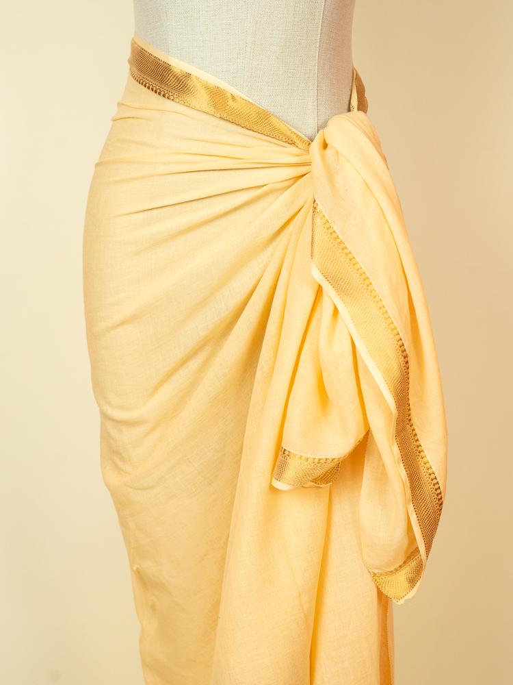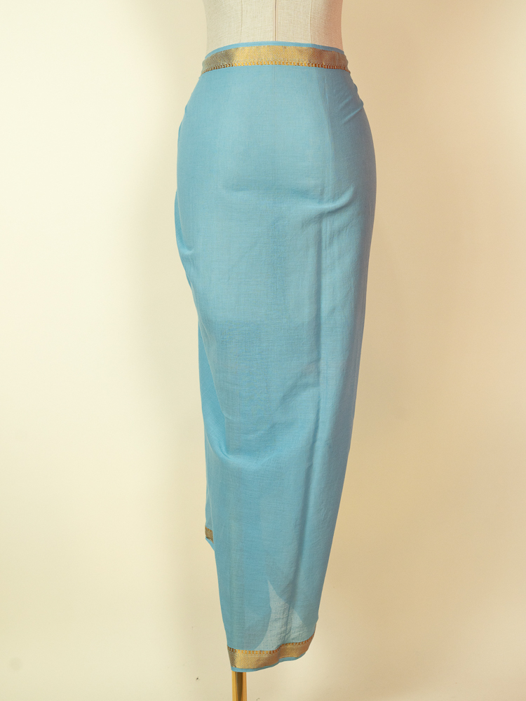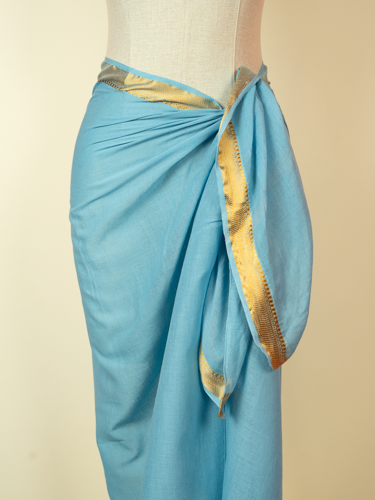 Made from soft, breathable cotton, it feels airy on the skin while offering elegant movement. The gold zari border adds a subtle touch of shine, elevating a simple piece into something more refined and special.