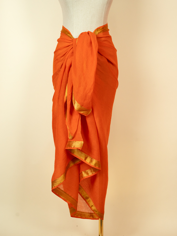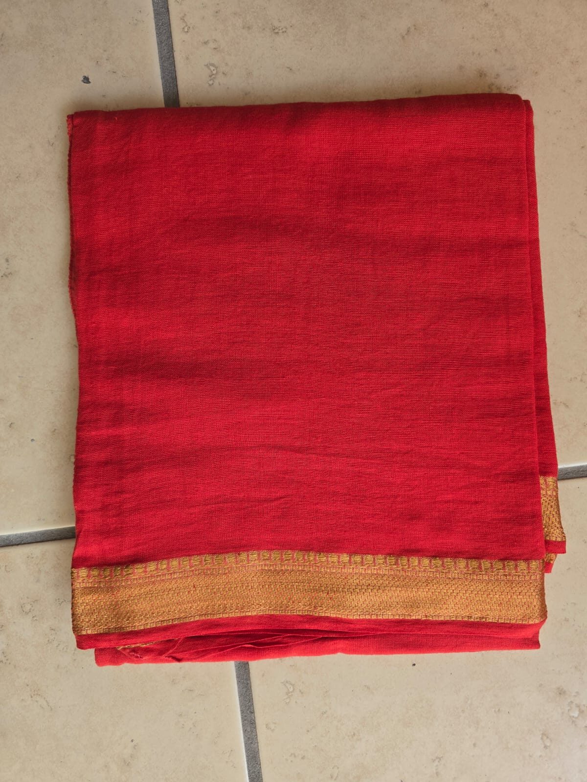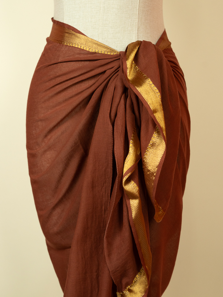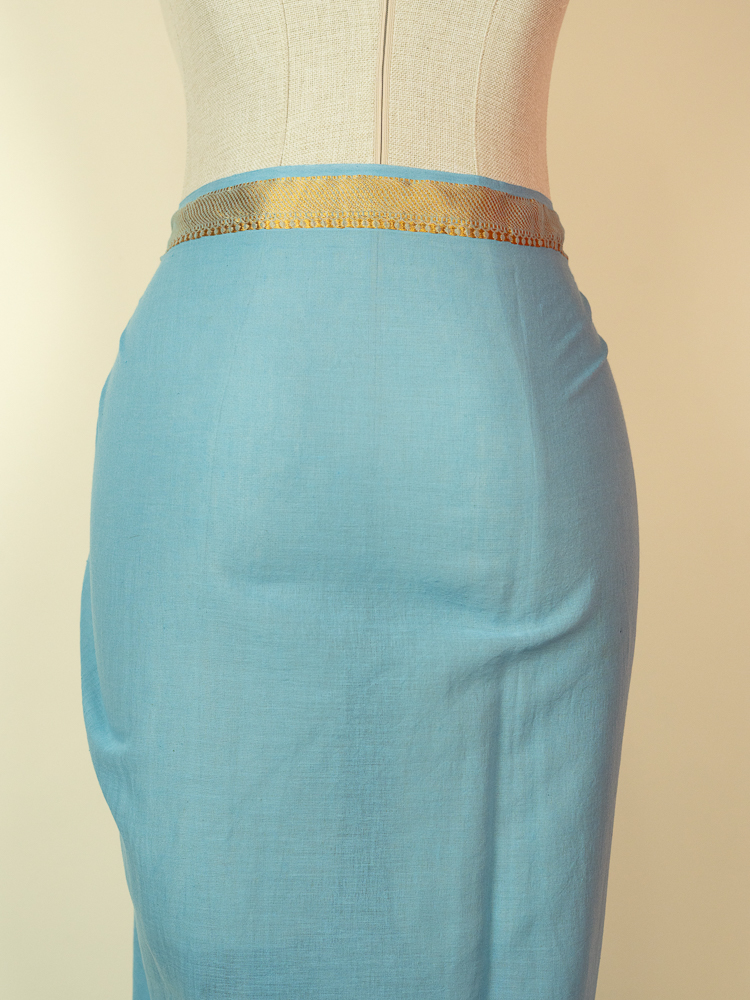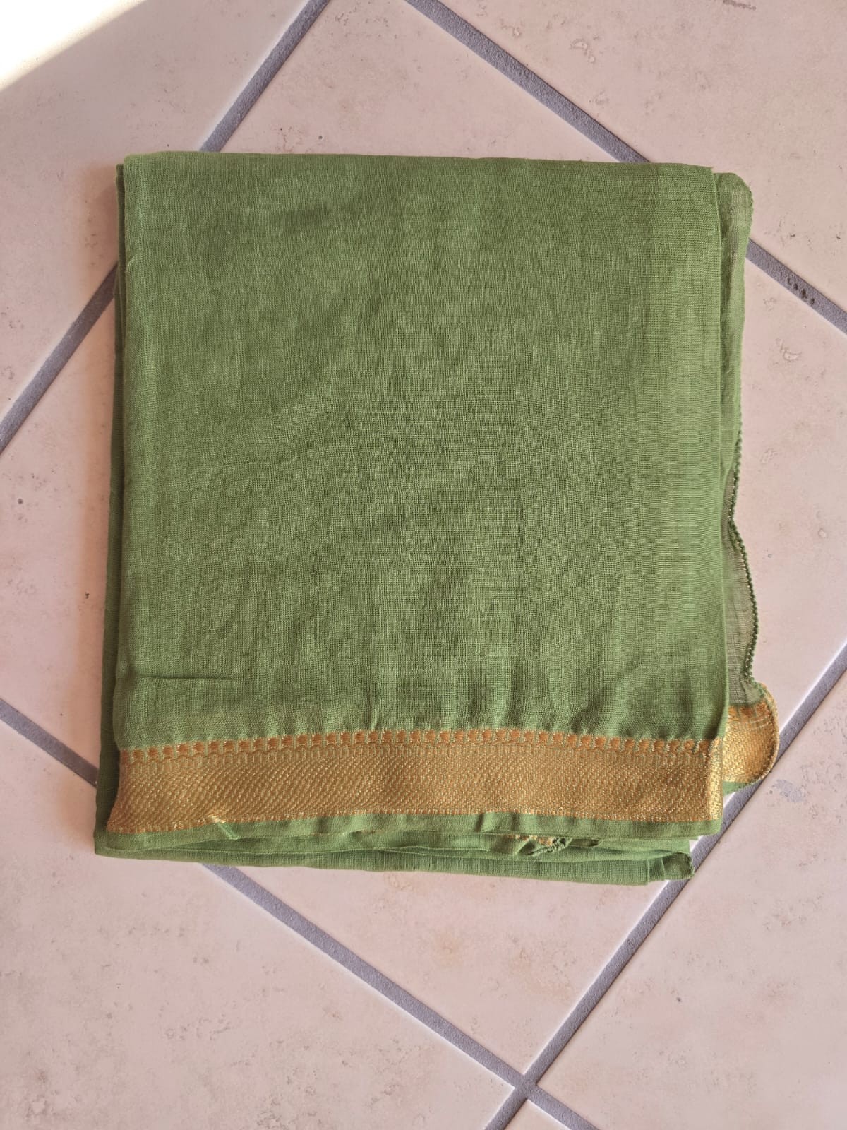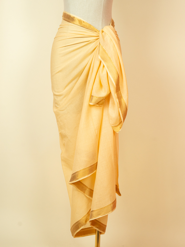 Made from soft, breathable cotton, it feels airy on the skin while offering elegant movement. The gold zari border adds a subtle touch of shine, elevating a simple piece into something more refined and special.