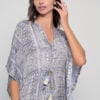 As a free-size piece, it drapes beautifully across body types, making it ideal for relaxed beach days, travel, or chic summer evenings. With its blend of artisanal print and luxurious silk, the Durga Caftan in grey is a versatile wardrobe statement.