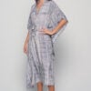 The Durga Caftan is a sophisticated Knowmad essential, crafted from lightweight saree silk and styled in the elegant grey Sueno print. Its flowing silhouette features a V-neckline, tassel-tie waist for adjustable fit, and side slits that add both comfort and movement.