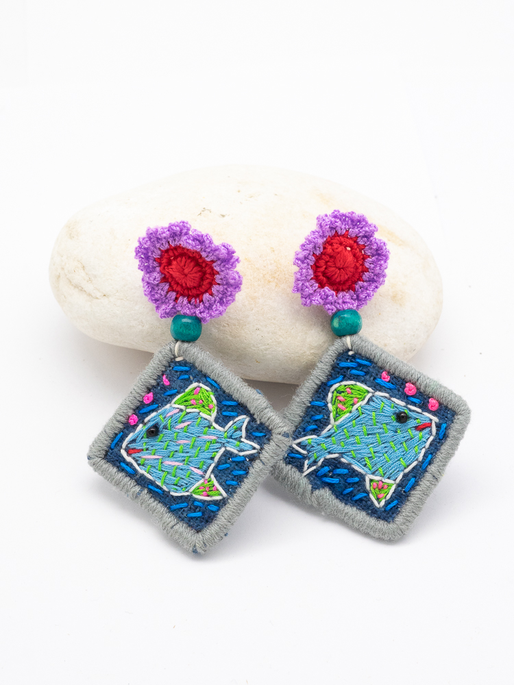 Earrings with handmade embroidery fish