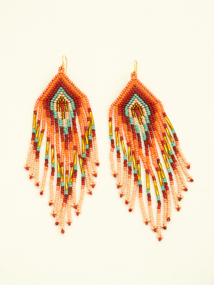These handmade Colombian earrings are a celebration of color, rhythm and craftsmanship. Each pair is carefully created by artisans using a combination of glass beads and refined Miyuki beads, forming a precise yet expressive composition.