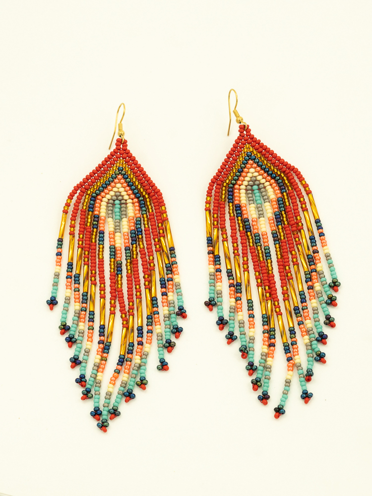 Handmade Colombian Earrings – Sacred Orange Statement Fringe