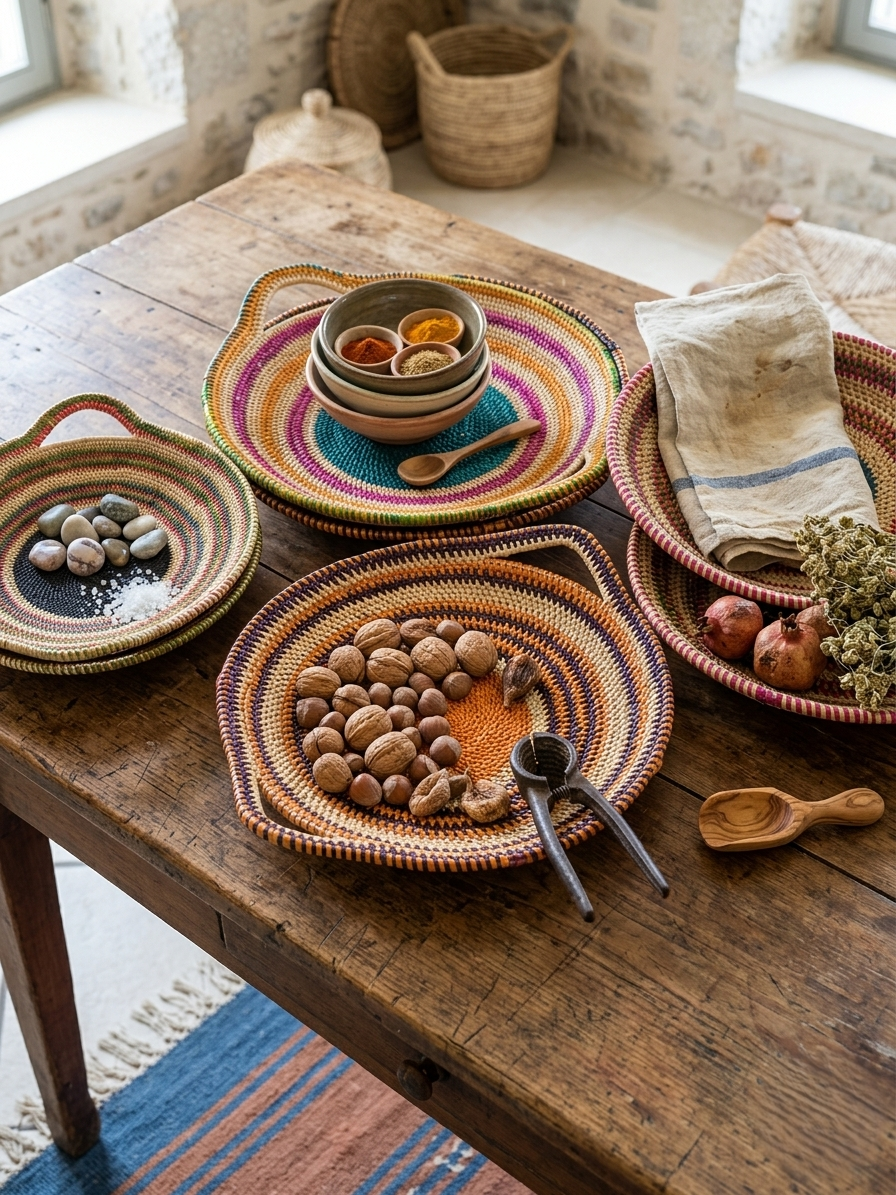 Each piece is unique, featuring subtle variations in pattern, color and shape that reflect the artisan’s hand and the authenticity of the craft. The organic textures and earthy tones make it a versatile decorative object, bringing warmth and character into any space.