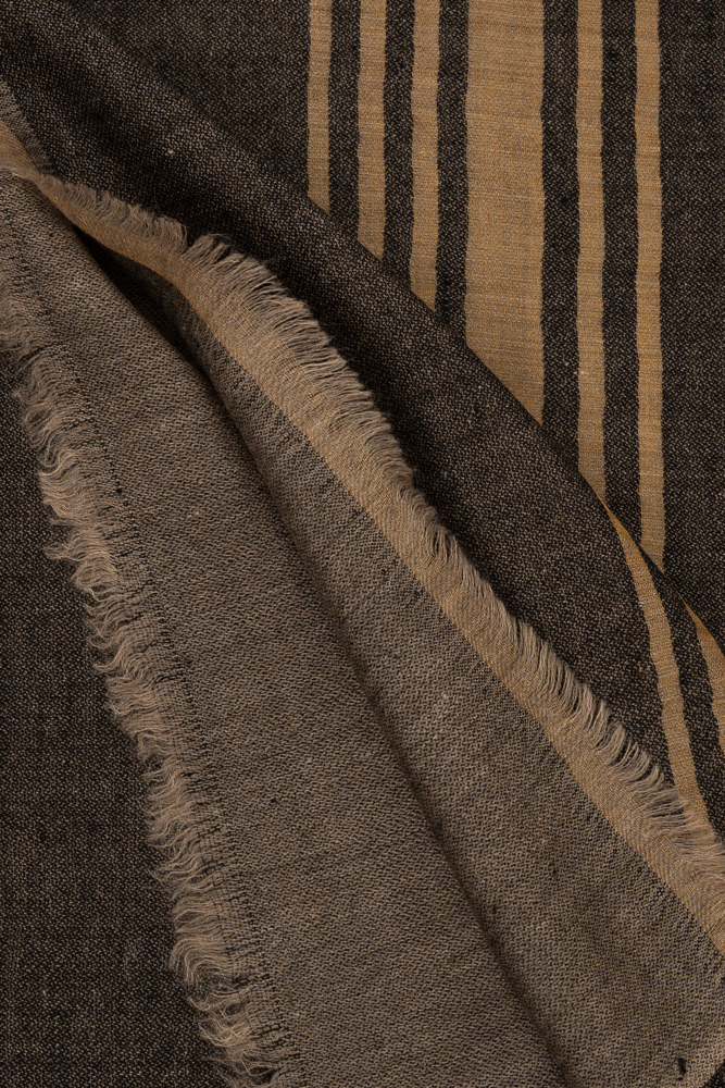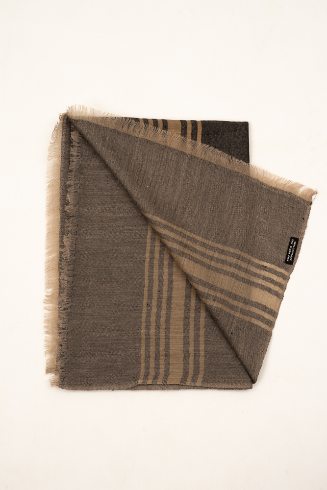Elevate your wardrobe with this handwoven cashmere pashmina shawl in a refined grey and beige striped design. Expertly crafted by Himalayan artisans, this luxurious wrap offers unmatched softness, warmth, and breathability thanks to its 100% pure cashmere composition.