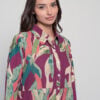Featuring the Alpinia Purple print, inspired by lush tropical leaves, it brings together earthy and vibrant tones that reflect a relaxed yet refined spirit. The button-down front and collared neckline give it a timeless touch, while the tiered skirt adds graceful movement and ease.