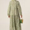 Ikaria Long Dress with Sleeves – Daisy Green Block Print (Cotton, Elegant Yellow Details)