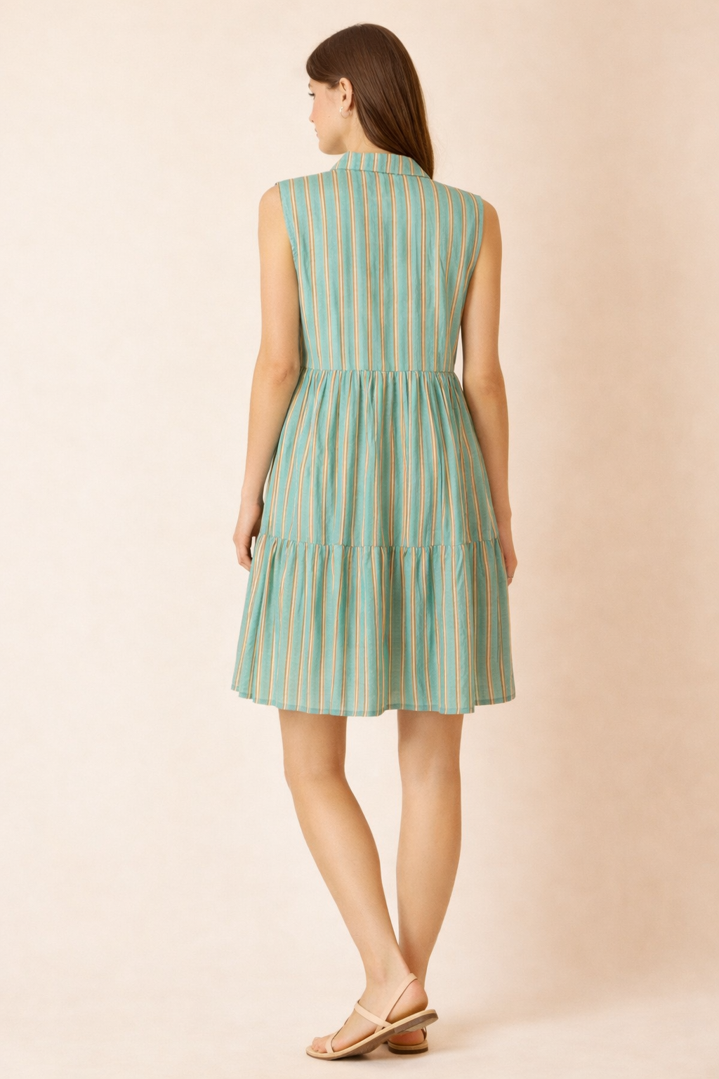 If you want to feel and look like a classic wholesome beauty, then the Ikaria short button dress is the perfect choice for you this summer. Highlight your elegance and femininity with this sophisticated below-the-knee dress made of high-quality breathable fabric that keeps you cool and comfortable even during the hottest of days. Its discreet beige-colored pattern and carefully crafted details give the Ikaria dress its dinstinct updated retro style. Pair it with your favorite low-heel sandals or a pair of sneakers, and combine it with an accessory in any bold color to make your outfit pop.