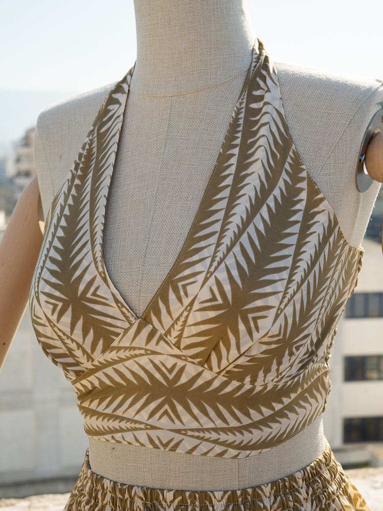 Spaghetti Top – Flame Print (One Size, Saree Silk)