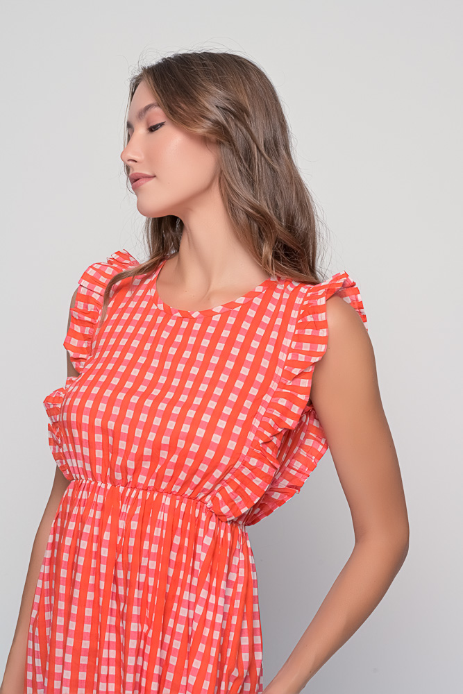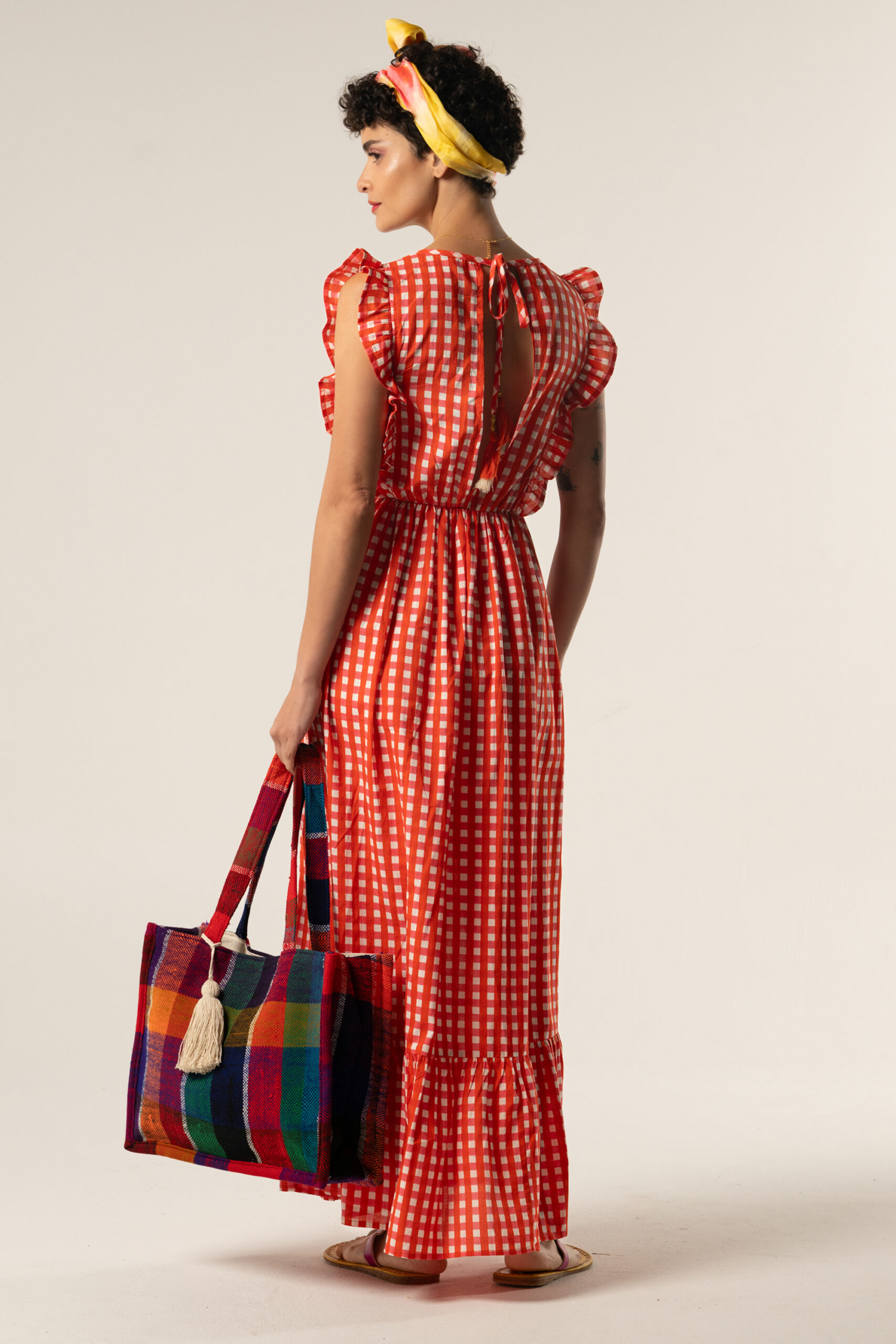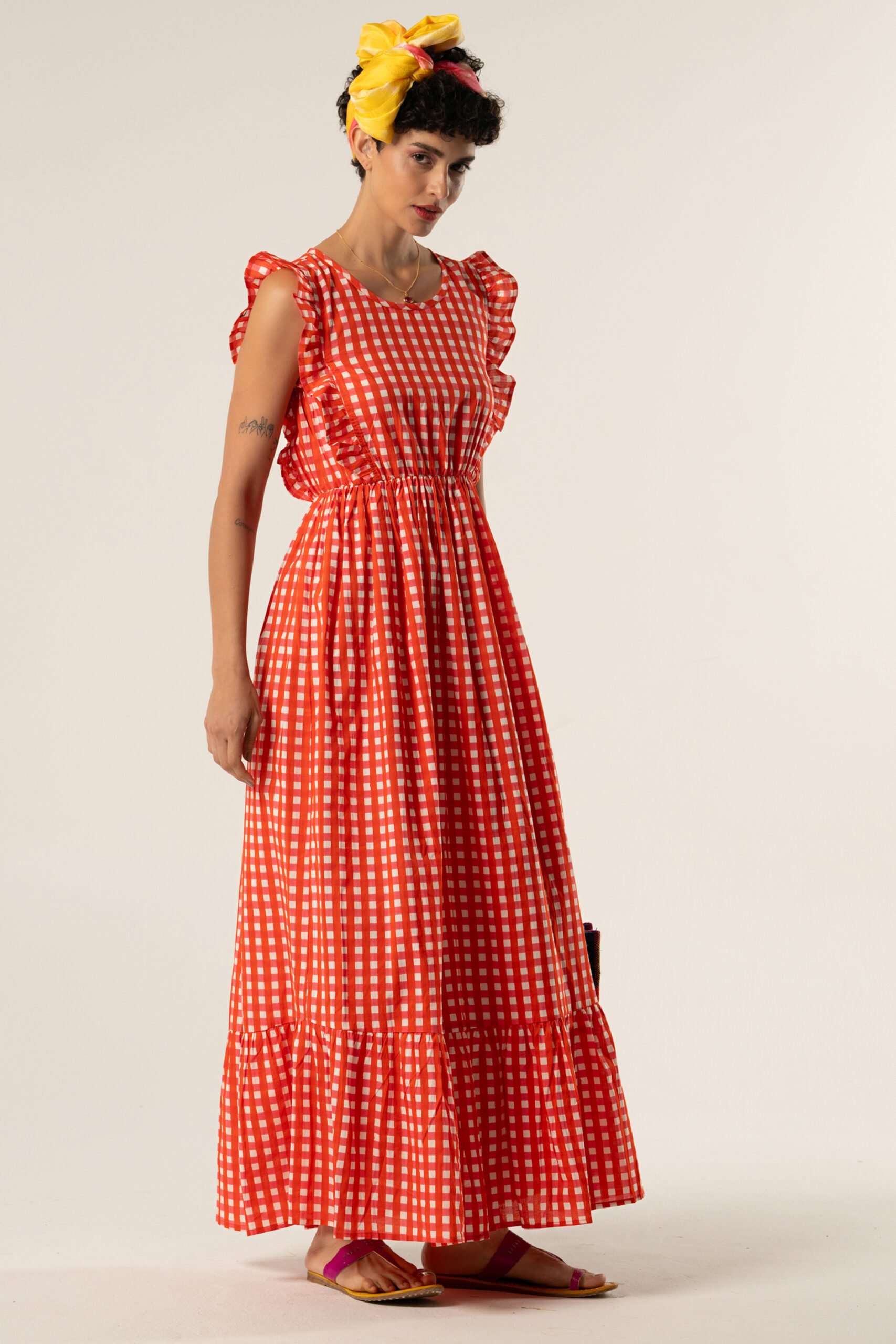 The Juno Dress in Red Checks is a joyful expression of easy elegance and feminine charm. Made from 100% soft cotton, it features a light, breathable texture that flows beautifully — ideal for warm days and relaxed evenings.