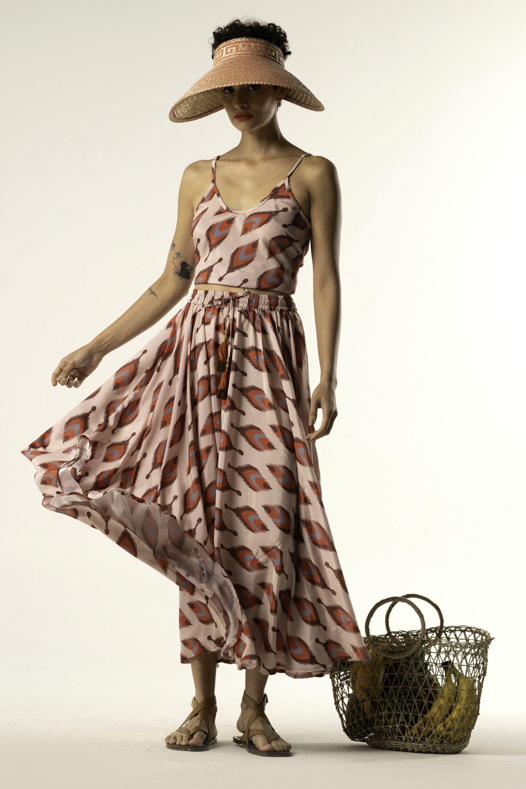 Pair it with the matching tie top or spaghetti top for a coordinated resort look or wear it with a plain crop top for casual chic styling.