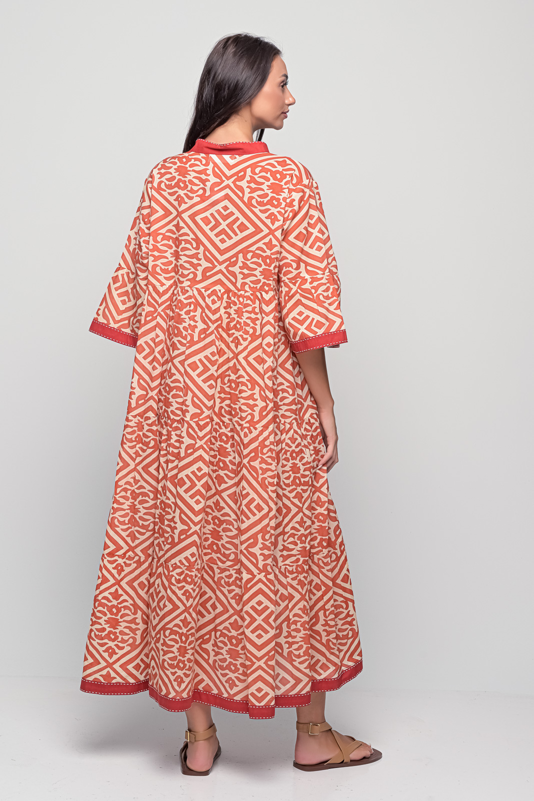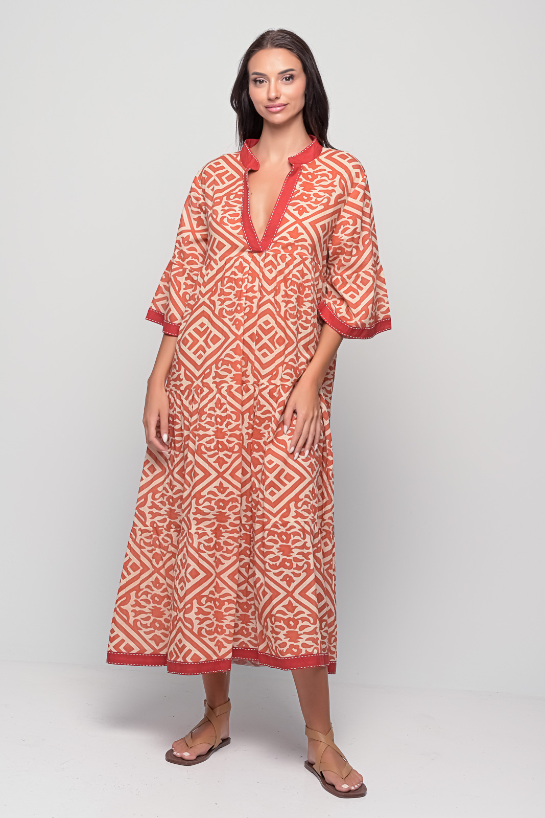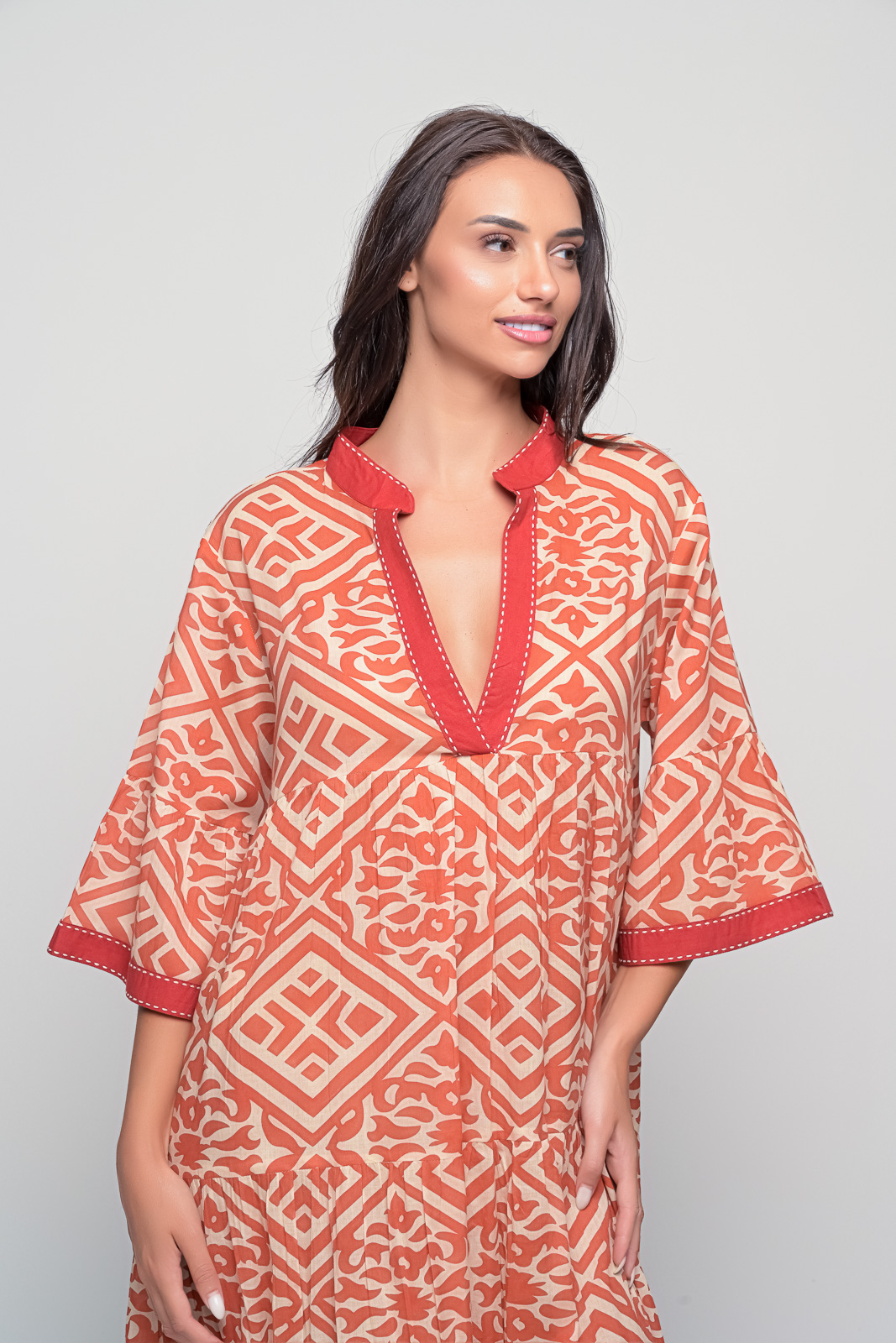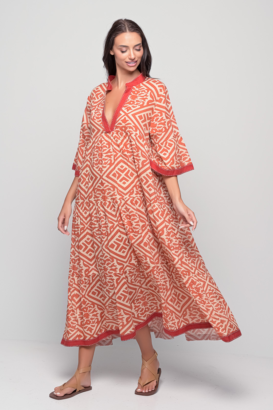 The Kythira Diamond Red Dress is a versatile piece you’ll reach for again and again – pair it with sandals for the day or add statement accessories for an evening look.