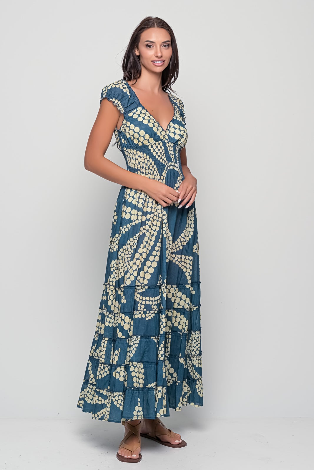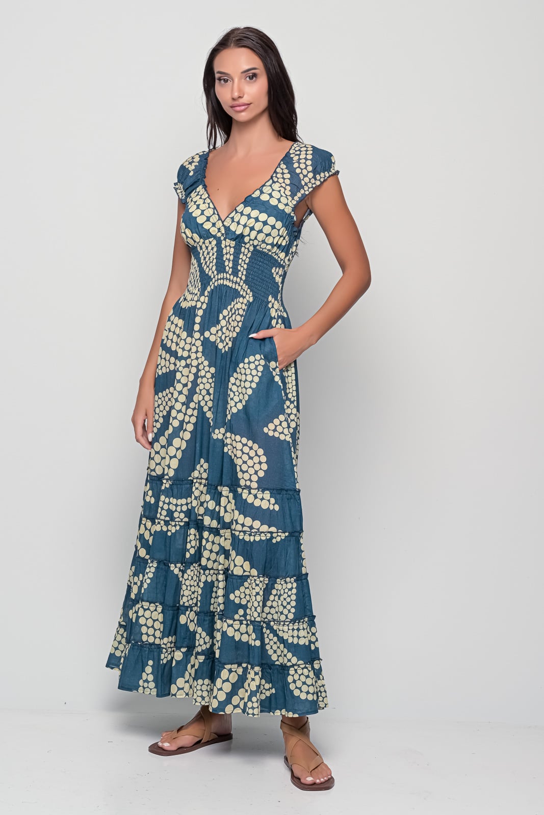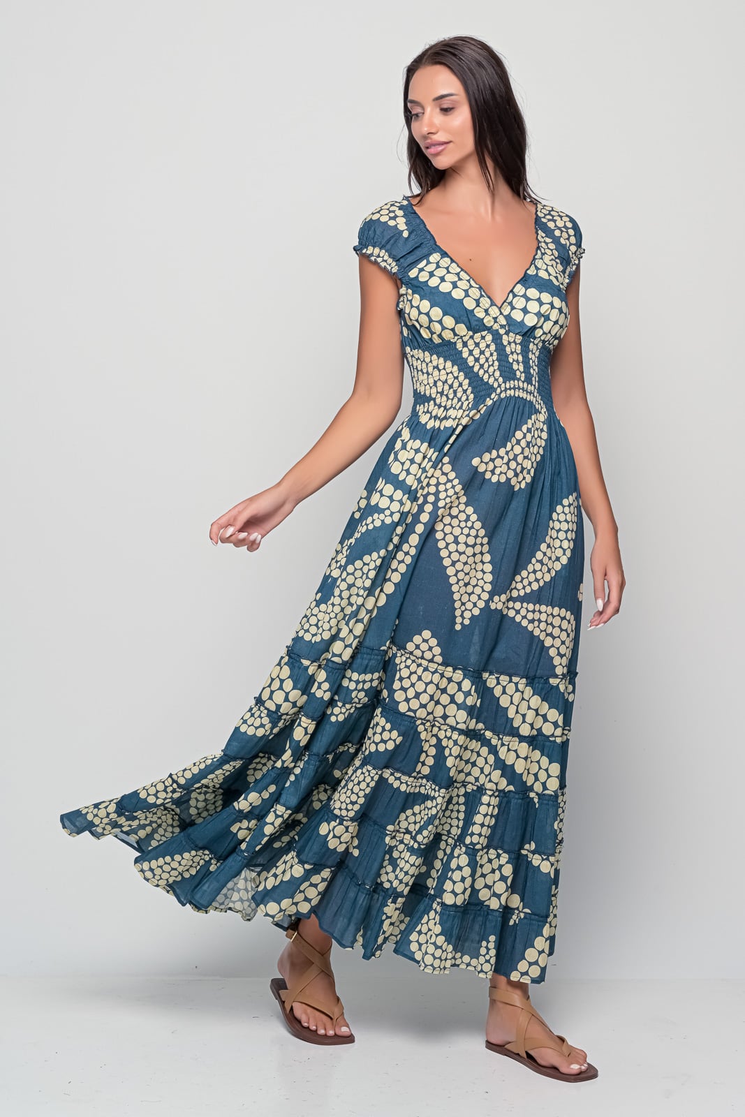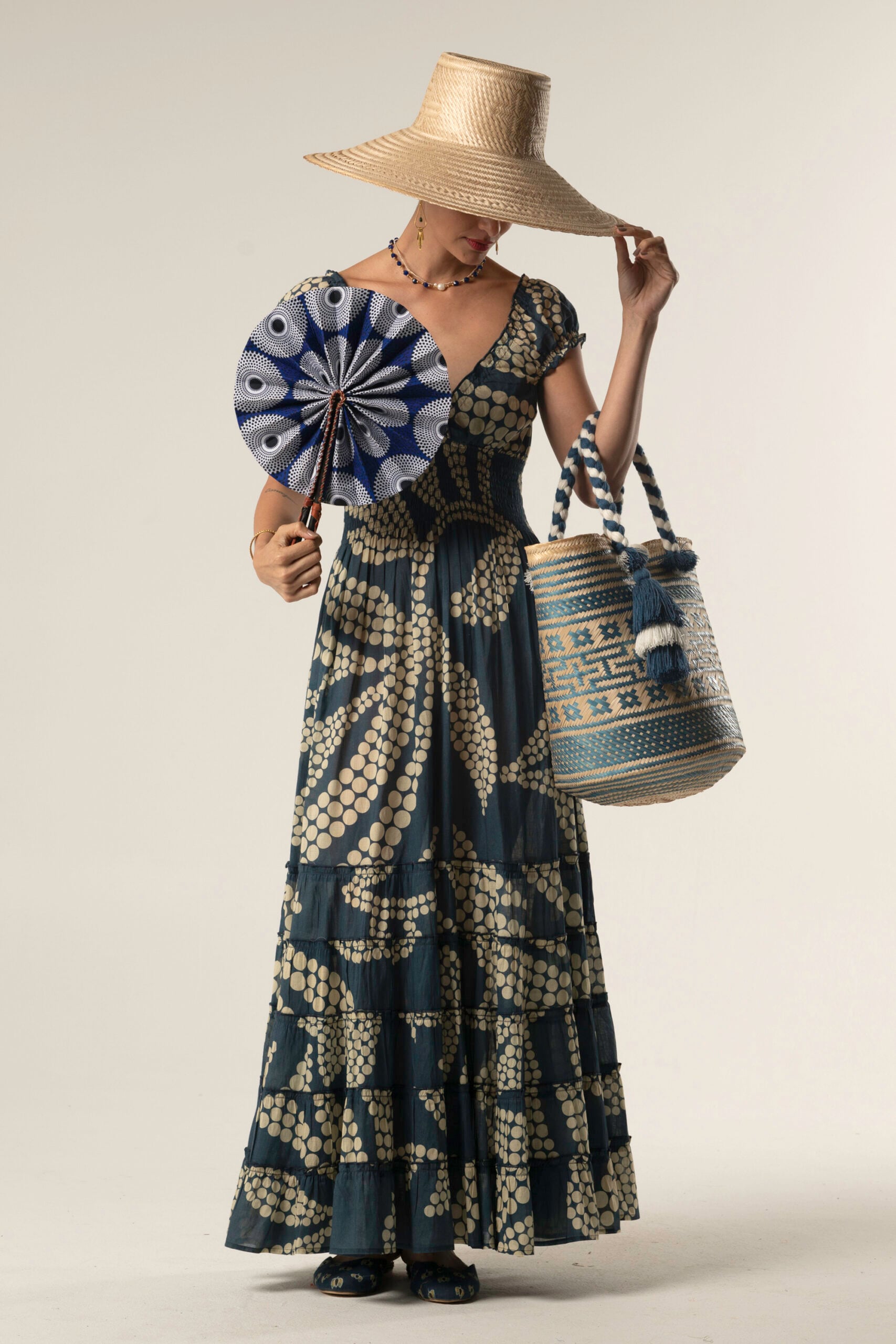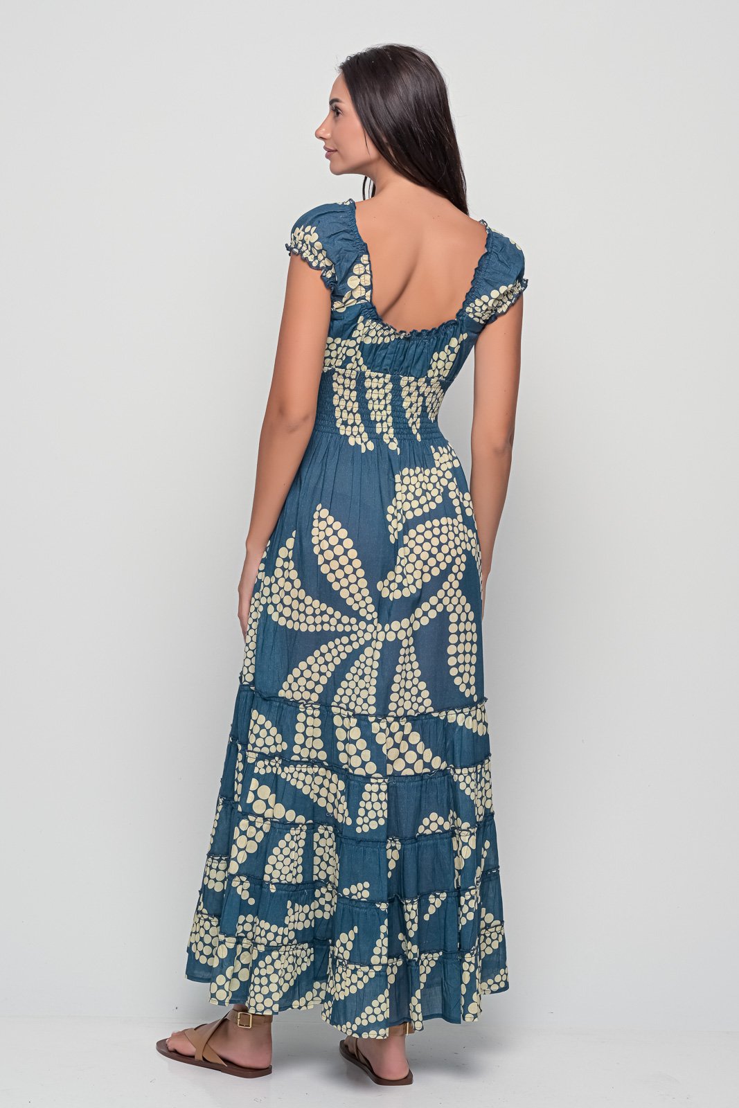 Feminine, flattering, and effortlessly chic — the Malibu Leaf Blue Cotton Maxi Dress is designed to celebrate your silhouette. Crafted from breathable cotton, it features a fitted bodice with a flowy skirt for the perfect balance of structure and ease. The striking Leaf print in blue adds freshness and elegance, making it a go-to for summer days and evenings.