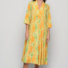 The coral seaweed-inspired print adds a vibrant yet natural charm, blending bold tones with subtle elegance. Designed with a V-neckline, 3/4 sleeves, and functional side pockets, the Marsha Dress combines versatility with sophistication.