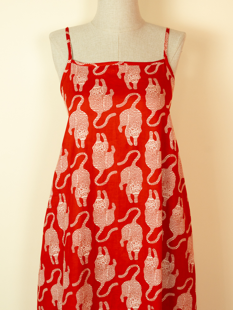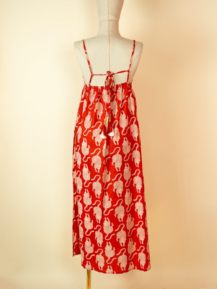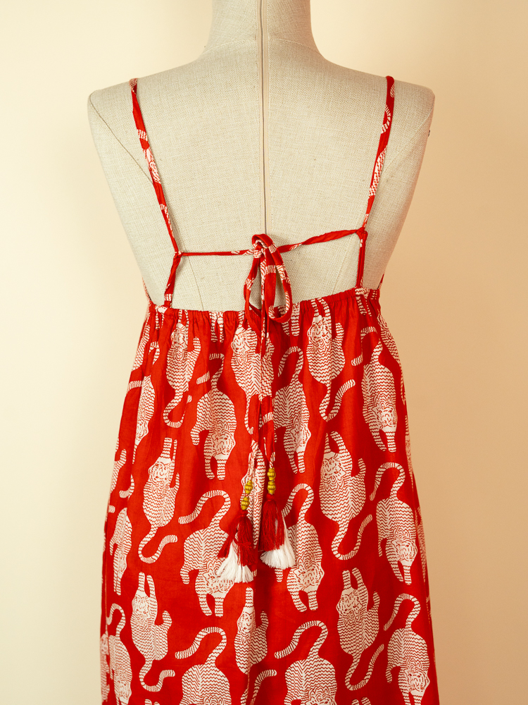 Natali Midi Tiger Dress Red – Cotton, Free Size