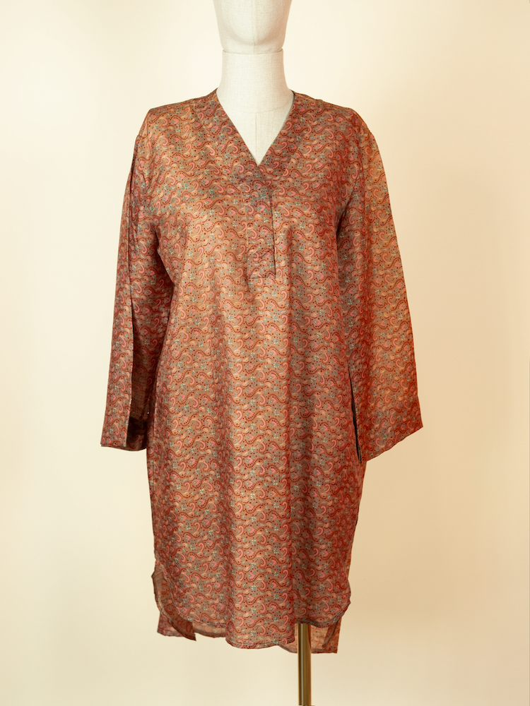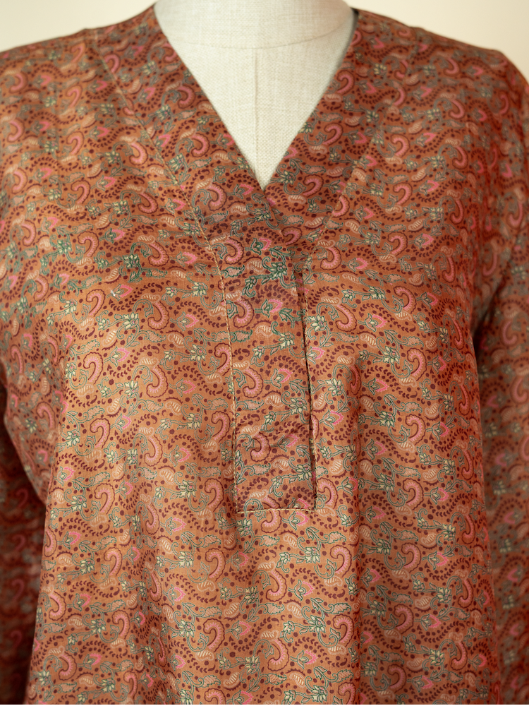 This one-of-a-kind silk tunic in brown is designed for ease, balance, and understated elegance. Crafted from lightweight silk, it feels soft on the skin and moves naturally with the body.