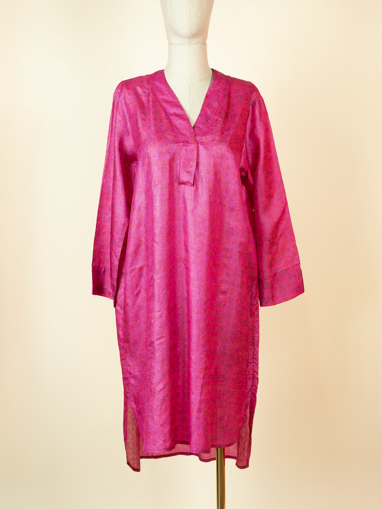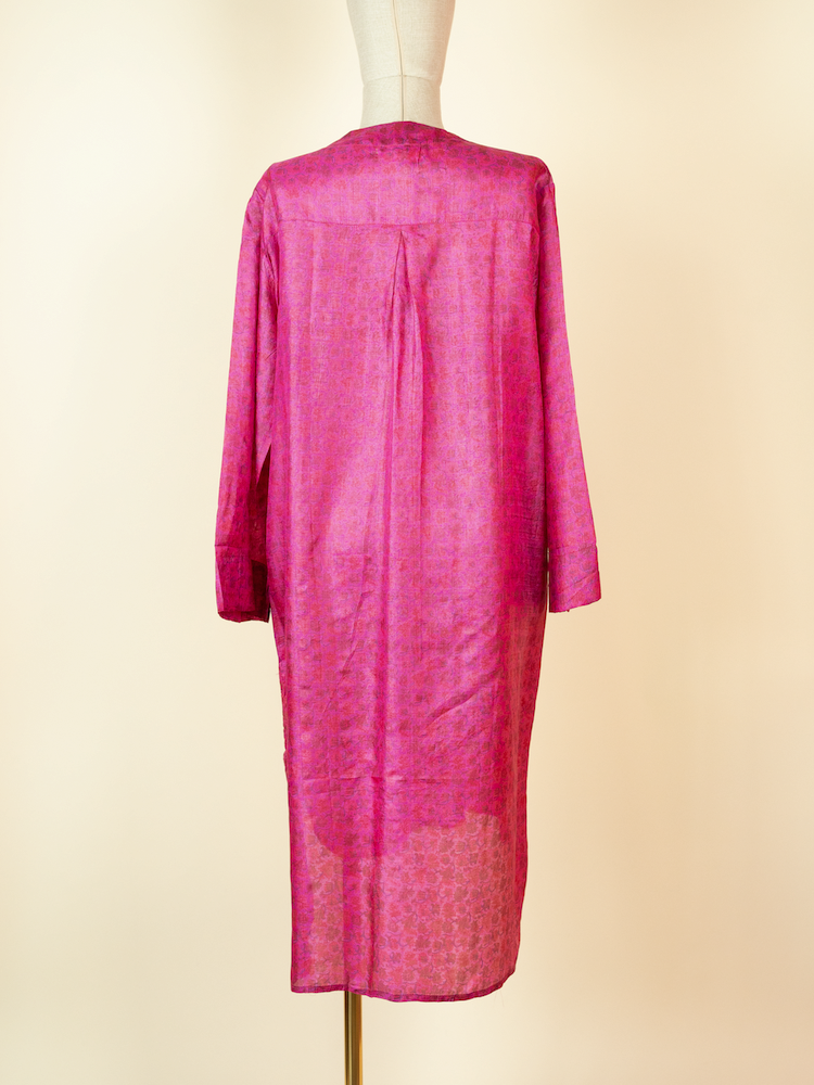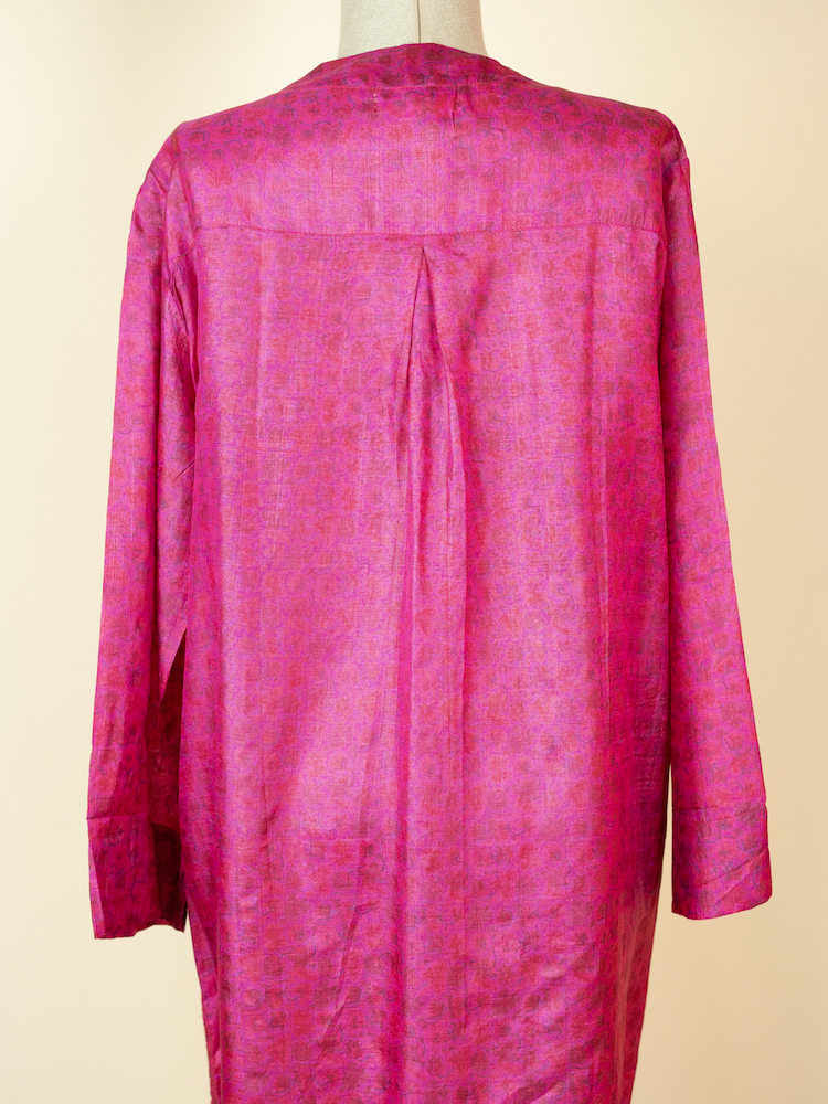 This one-of-a-kind silk tunic in Fuchsia is designed for ease, balance, and understated elegance. Crafted from lightweight silk, it feels soft on the skin and moves naturally with the body.
