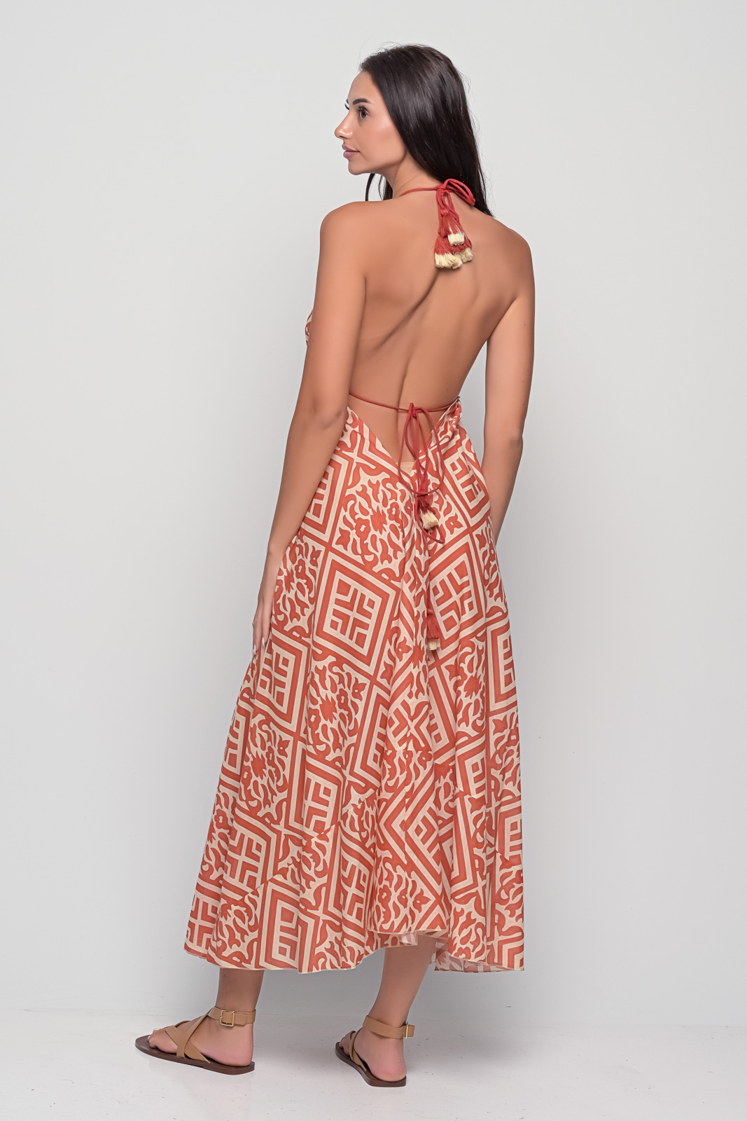 Make a confident statement with the Open Back Diamond Red Maxi Dress. Crafted in breathable cotton, this halter-style dress features an open back and a flowy maxi cut. The vibrant Diamond print in red ensures all eyes are on you, whether at a summer party, holiday, or evening out.