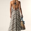 Open Back Wave Print Cotton Maxi Dress in White – Halter Neck & Flowy Summer Style