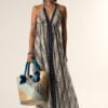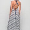Open Back Wave Print Cotton Maxi Dress in White – Halter Neck & Flowy Summer Style